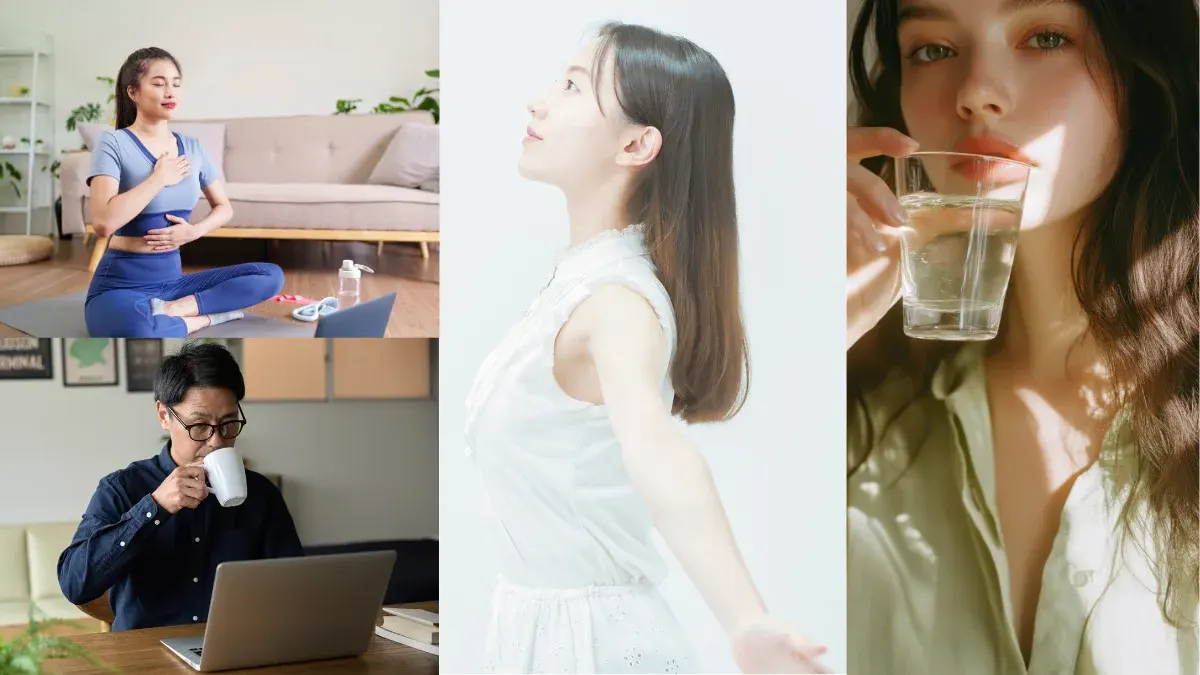 5.หยุดพักหายใจเพื่อให้รู้สึกตื่นตัว การหายใจลึก ๆ จะช่วยเพิ่มระดับของออกซิเจนในเลือด ซึ่งจะช่วยชะลอจังหวะการเต้นของหัวใจให้ช้าลง ช่วยลดระดับความดันโลหิต เพิ่มการไหลเวียนโลหิต ปรับอารมณ์ ฟื้นฟูพลังงาน โดยการหายใจจะเป็นการกำหนดลมหายใจไปที่บริเวณท้อง ให้นั่งตัวตรงและปฏิบัติดังนี้ประมาณ 10 ครั้ง