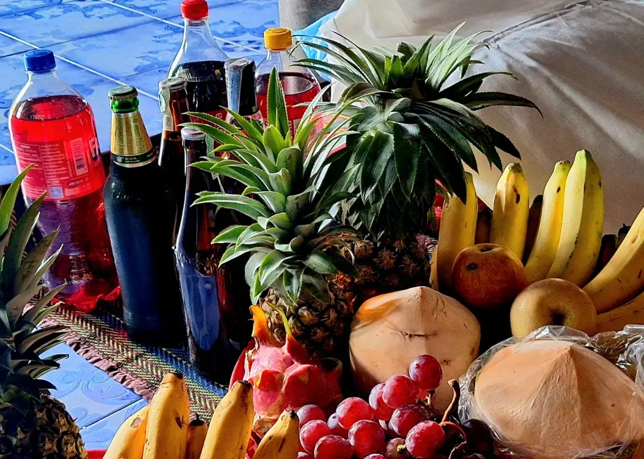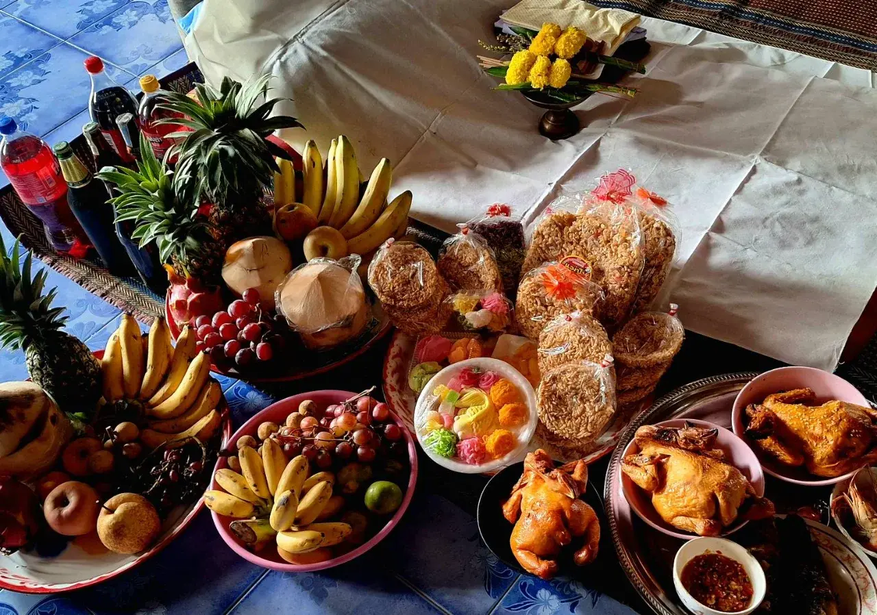 - การจัดสำรับแซนโฎนตา – ครอบครัวจะเตรียมอาหารคาวหวาน ผลไม้ ขนมต่าง ๆ เช่น ข้าวต้มมัด ขนมเทียน ขนมกล้วย ไปถวายพระและเซ่นไหว้บรรพบุรุษ