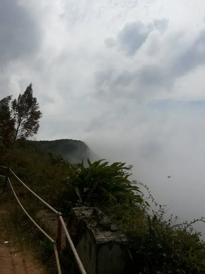 ความน่ากลัวที่สุดคือเรานั้นรู้ว่ามันคือเหวลึก แต่ว่าเรานั้นไม่สามารถที่จะมองลงไปด้านล่างได้เลย เพราะว่าเจ้าหมอกนั้นหนามาก น่ากลัวจนไม่กล้าที่จะมองลงไป สุดลูกหูลูกตาเลย จนด้านหน้านั้นมีการเขียนเพื่อที่จะบอกเรานั้นว่า หากว่าเรานั้นต้องการที่จะถ่ายภาพนั้นมีคนถ่ายให้ได้ภาพด้วย เรามองไปด้านหน้าคิดในใจไม่ได้แล้วหละวันนี้เพราะว่าถ่ายไปความสวยงามนั้นไม่ได้อยู่ดี ได้เพียงความมืดมนเท่านั้นเอง