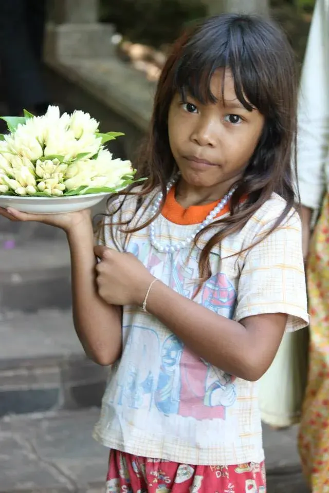 ในตอนนั้นเรามองหน้าแล้วเรานั้นซื้อทั้งหมดถือว่าไม่ได้มาก แต่ว่าตอนนั้นเรานั้นมี เราให้น้องไปตอนนั้นน่าจะยี่สิบดอลล่า แต่ราคาของดอกไม้นั้นช่อละ ห้าร้อยรูปี หรือว่าห้าบาทในเงินไทย เขานั้นมานั่งเราทานอาหารกันตอนที่เรานั้นไปถึงเพื่อที่จะเก็บในส่วนของพลังในการเดินขึ้น เราเลยให้อาหารน้องไปหมดเลยเพราะว่าอิ่มกันแล้ว จะหอบไปหอบมานั้นคงยาก เรานั้นจะลงมากินอีกอยู่หลังจากที่ลงมา