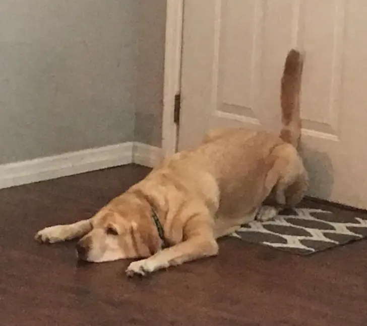 12. เมื่อเธอขออาหาร/เรียกร้องความสนใจ สุนัขของฉันจะพยายามพลิกตัวไปนอนหงายและทำตัวน่ารัก แต่ในวันนี้เธอกลับทำไม่ได้เลย และตกอยู่ในสภาพแบบนี้