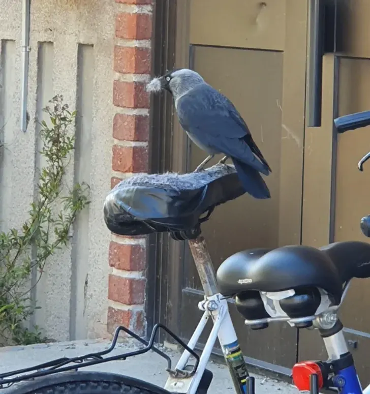 15. ฉันเห็นเจ้านกตัวน้อยตัวนี้พยายามขโมยขนปุยจากเบาะจักรยานของใครบางคน