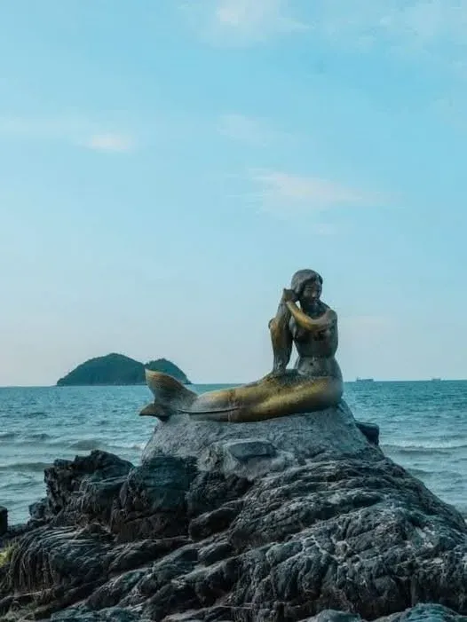 จากหาดสมิหลา เมื่อมองออกไปกลางทะเลจะเห็นเกาะเล็ก ๆ ที่มีชื่อเป็นเอกลักษณ์คือเกาะหนูและเกาะแมว ซึ่งถือเป็นอีกหนึ่งสัญลักษณ์คู่เมืองสงขลาเช่นเดียวกับรูปปั้นนางเงือกทองอันเลื่องชื่อ รูปปั้นนางเงือกที่นั่งอยู่บนโขดหินได้กลายเป็นภาพจำและจุดถ่ายภาพยอดนิยมที่นักท่องเที่ยวไม่พลาดจะมาเยือน บริเวณโดยรอบถูกจัดแต่งเป็นสวนหย่อมให้ความรู้สึกสงบร่มรื่น โดยเฉพาะในยามเย็นที่แสงอาทิตย์ค่อย ๆ ลับขอบฟ้า ทำให้ที่นี่กลายเป็นจุดชมวิวที่งดงามที่สุดแห่งหนึ่งของเมือง