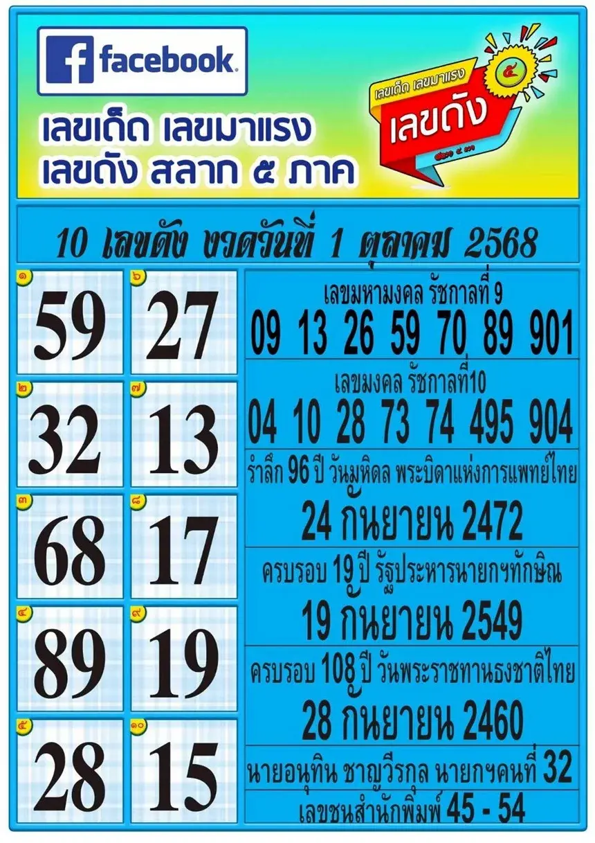 10 เลขเด็ดเลขดัง "สลาก 5 ภาค" งวดวันที่ 1 ตุลาคม 68..รีบส่องเลย ก่อนหวยหมดแผง!!