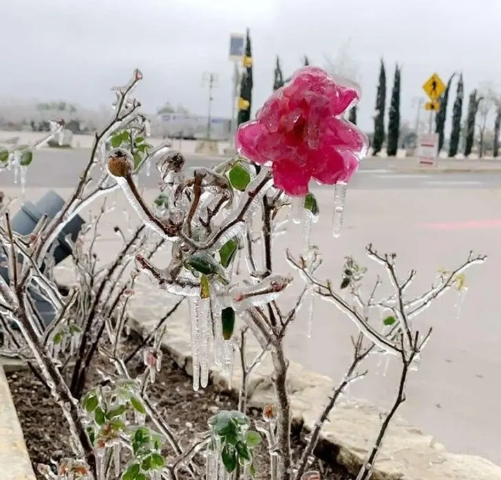1. นี่คือดอกไม้แช่แข็งที่ฉันพบในออสตินระหว่างพายุฤดูหนาวในเท็กซัส