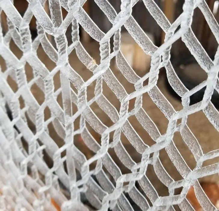 4. นี่เป็นละอองฝนที่ตกลงมาแล้วจับตัวเป็นน้ำแข็งติดตาข่ายในเล้าไก่