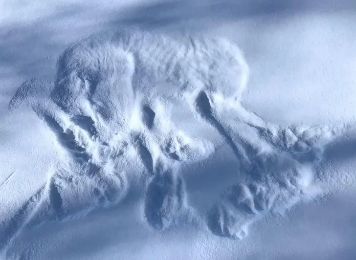 11. ฉันเจอลายพิมพ์นี้จากหมาป่าสีเทาตัวหนึ่งนอนอยู่เป็นรอยประทับบนหิมะ แม้แต่ซี่โครงของมันก็ยังเห็นเลย!