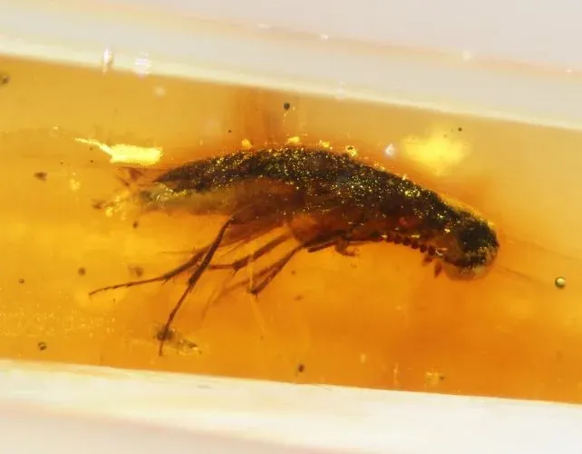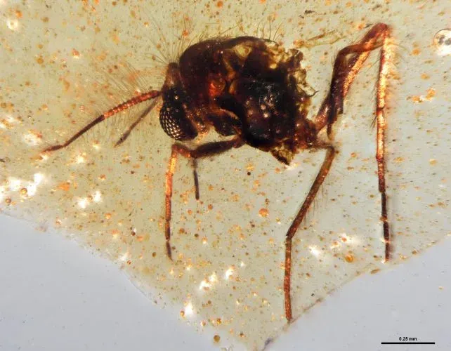 อำพันที่อยู่กับแมลงค่อนข้างหายาก ต่างจากอำพันที่เป็นที่รู้จักส่วนใหญ่ที่มาจากยางไม้จากรากไม้ ซึ่งมักจะมีตัวอย่างของสิ่งมีชีวิตอื่นๆ อยู่เพียงไม่กี่ตัวอย่างเท่านั้น