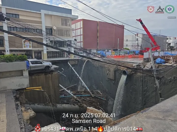 เช้านี้ (24 ก.ย.68) ถนนสามเสนหน้า รพ.วชิรพยาบาล - แยกซังฮี้ ถนนทรุดตัวลึกหลายเมตร