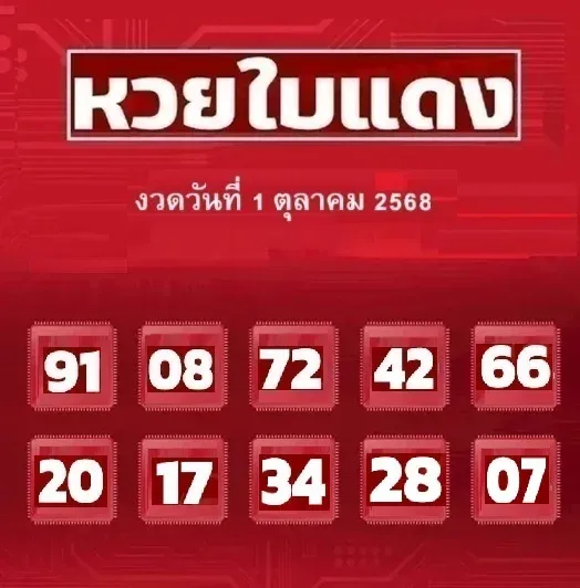 10 เลขฮิต "หวยใบแดง" งวดวันที่ 1 ตุลาคม 68 มาแล้ว!..ส่องด่วน ก่อนหวยหมด!!