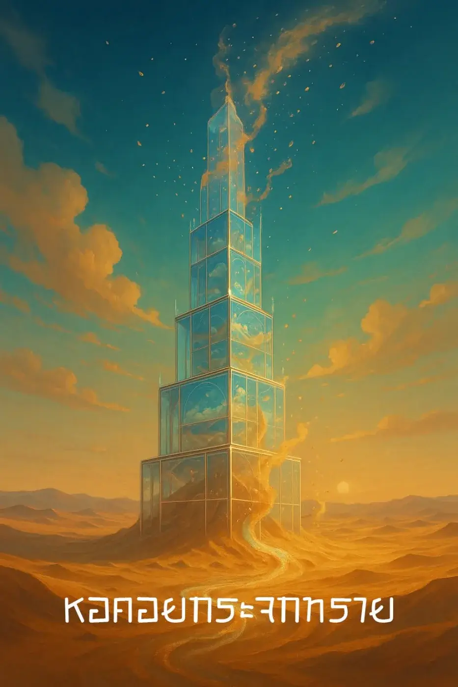 ณ ขอบฟ้าอันไกลโพ้น ที่ซึ่งสายลมร้อนพัดพาเม็ดทรายละเอียดปลิวว่อน หอคอยแห่งหนึ่งตั้งตระหง่านท้าทายกาลเวลา มันไม่ได้ถูกสร้างจากหินหรืออิฐดินเผาเฉกเช่นหอคอยอื่นทั่วไป แต่ก่อร่างขึ้นจากกระจกใสที่เคยเป็นเพียงเม็ดทรายธรรมดา ผนังทุกด้านเป็นประกายระยิบระยับใต้แสงตะวัน บางครั้งสะท้อนแสงจ้าจนแทบมองไม่เห็น บางครั้งโปร่งใสราวกับไม่มีตัวตน ราวกับภาพลวงตาที่ปรากฏขึ้นท่ามกลางความว่างเปล่าของทะเลทราย