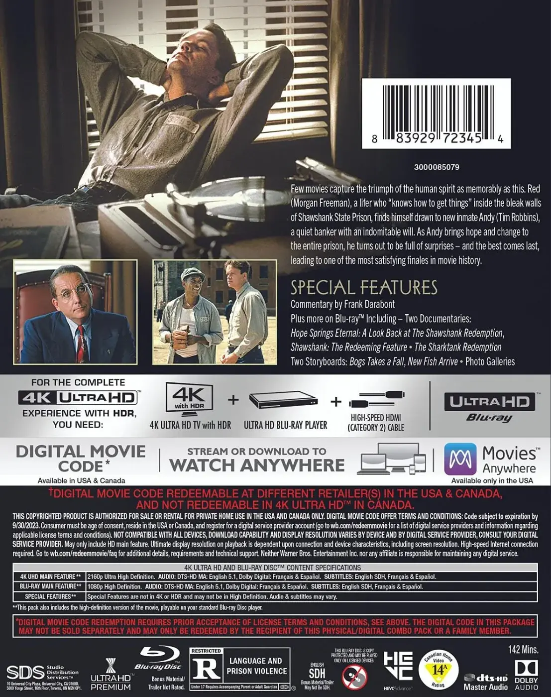 สร้างจากเรื่องสั้นของ Shephen King โดยการกำกับของ Frank Darabont เรื่องราวแห่งคุก Shawshank ซึ่งเต็มไปด้วยความรุนแรงของพวกเดนคุกและพัศดี ความหวังของการมีชีวิตและมิตรภาพแห่งการช่วยเหลือ