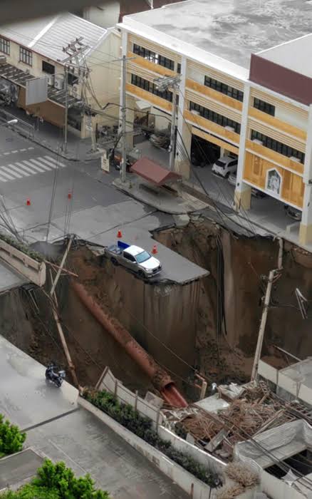 ข่าวล่าสุดแผ่นดินทรุดเหตุถนนยุบบริเวณใกล้รั้ว รพ.วชิรพยาบาล และ สน.สามเสน