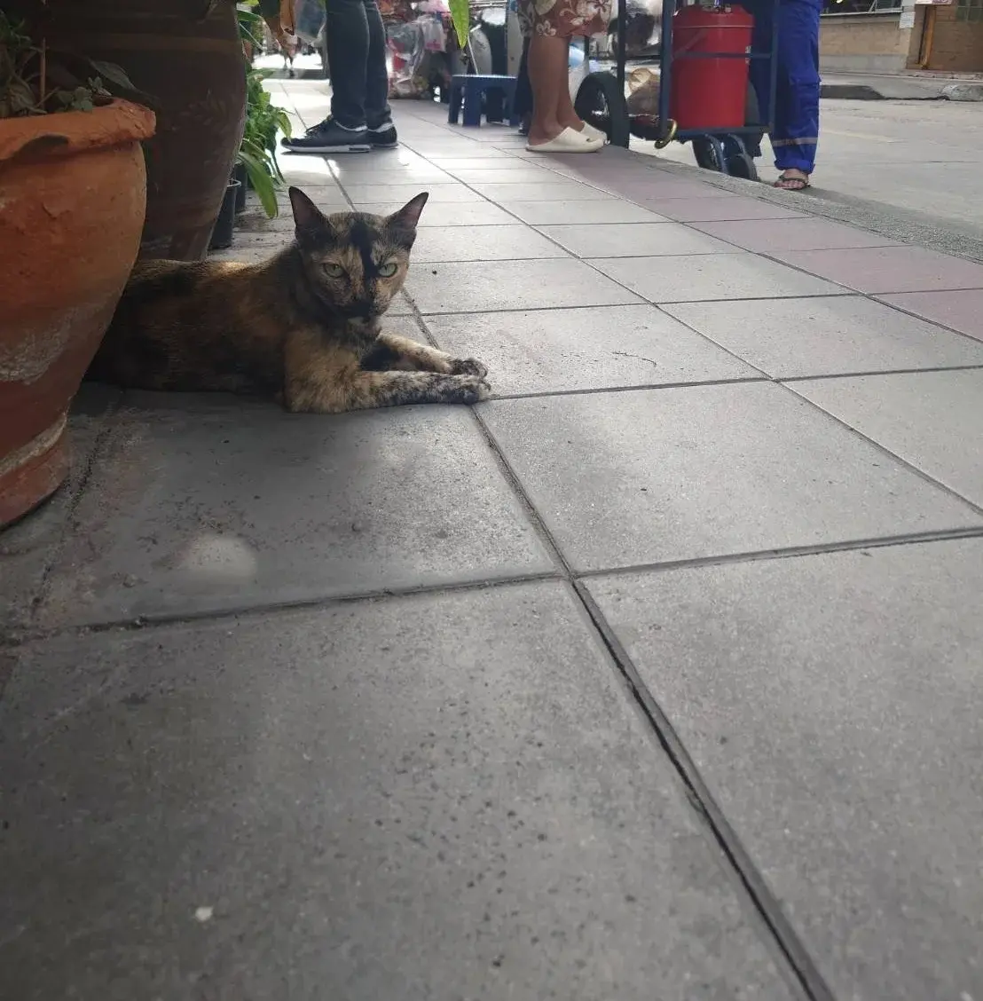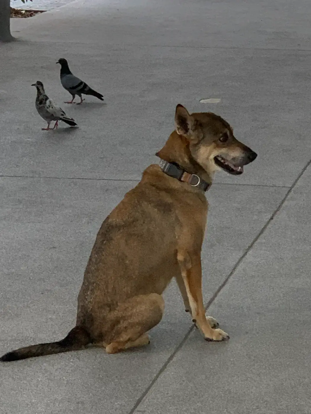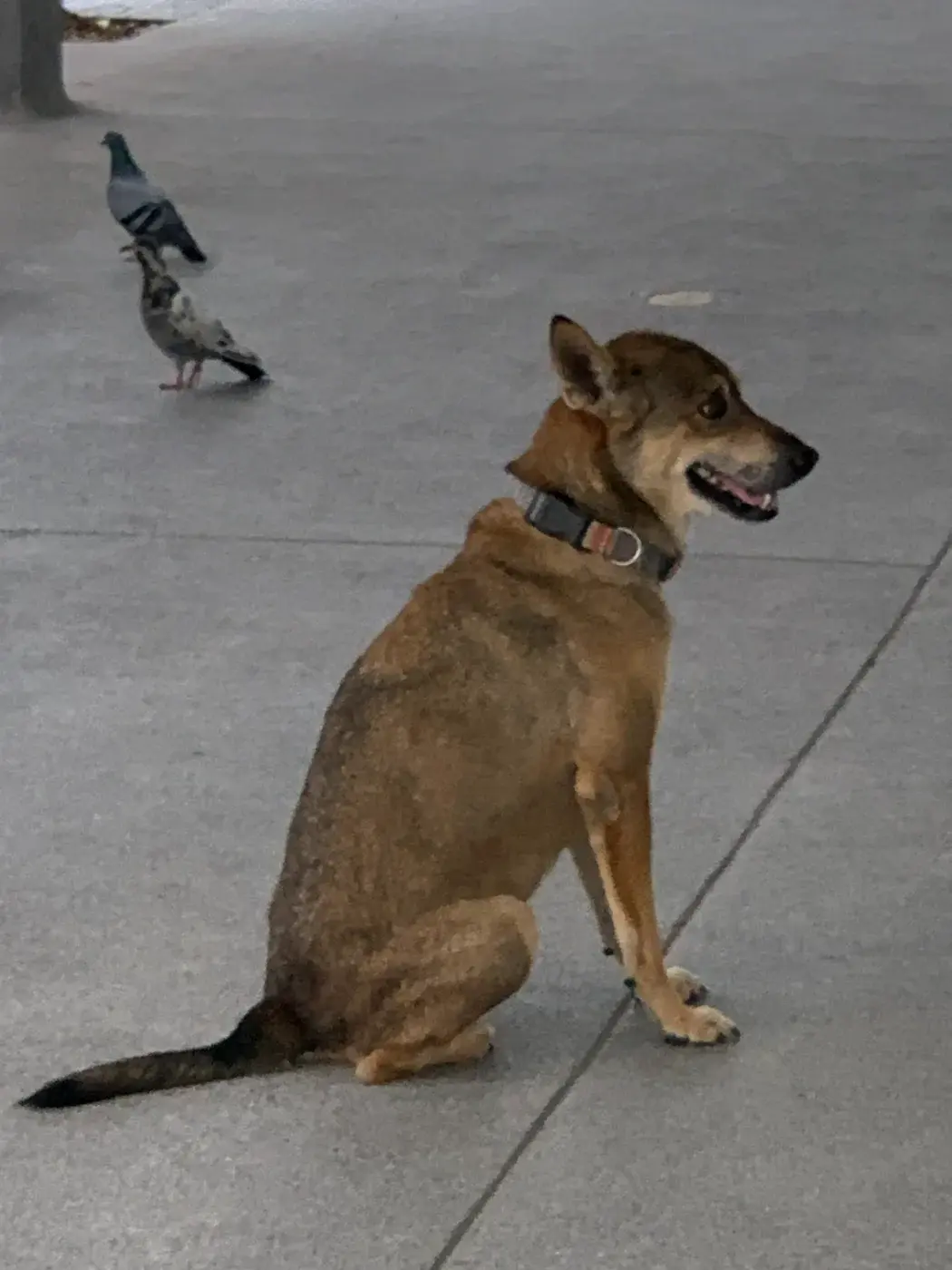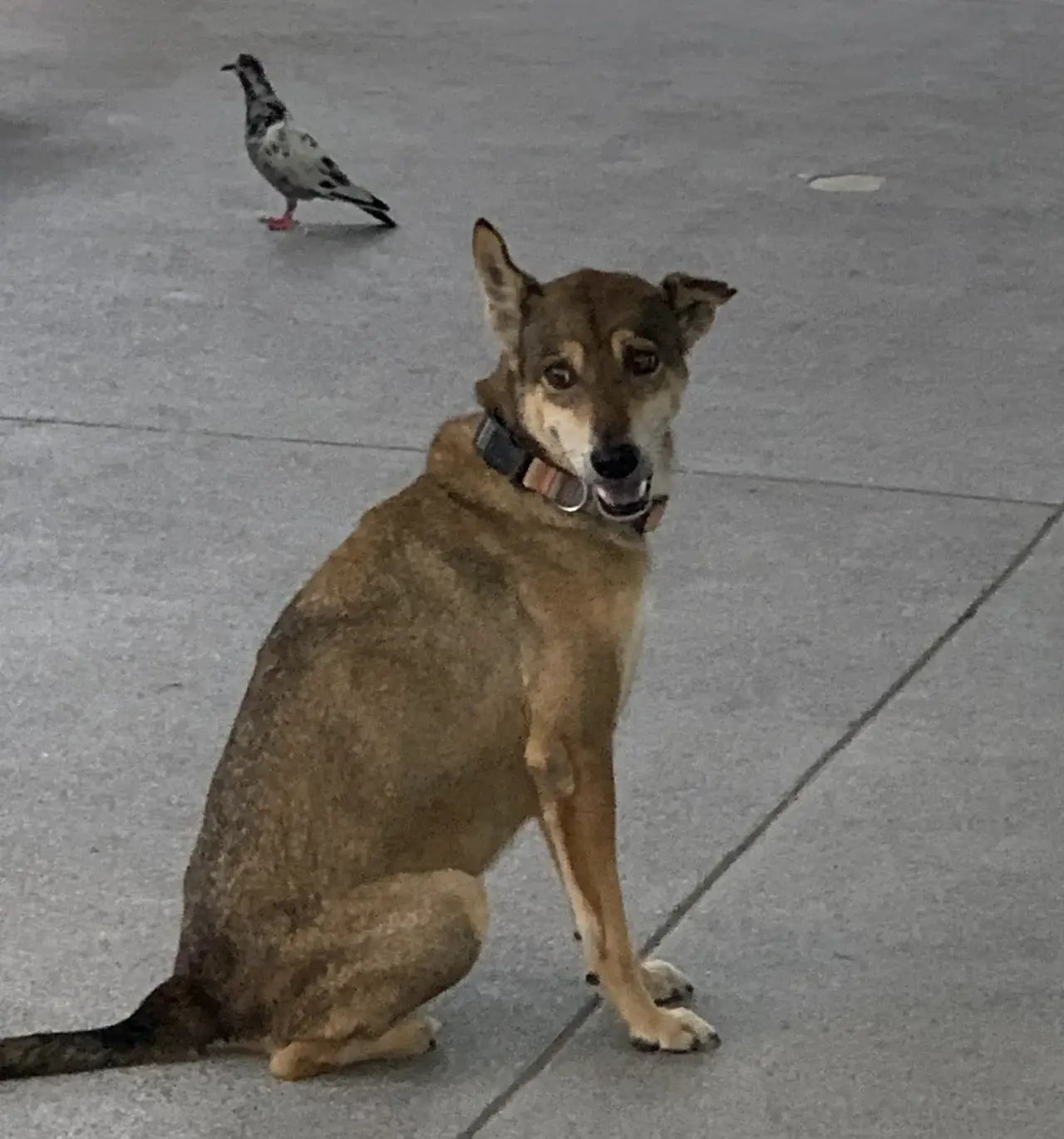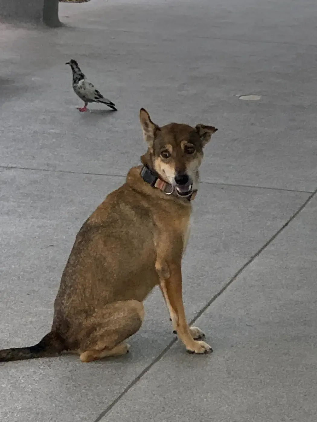 น้องหมาจรนี้ดูเหมือนจะมีเจ้าของเพราะใส่ปลอกคอ แต่ถูกปล่อยไว้ข้างนอก น้อนดูไม่ดุเลยและน่ารักทีเดียว