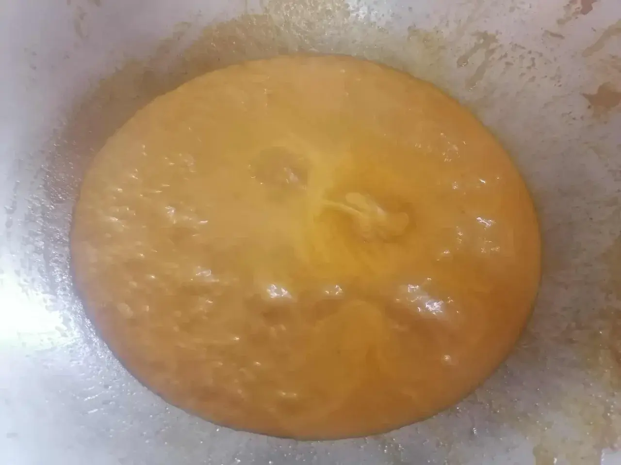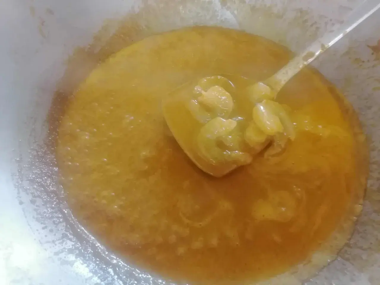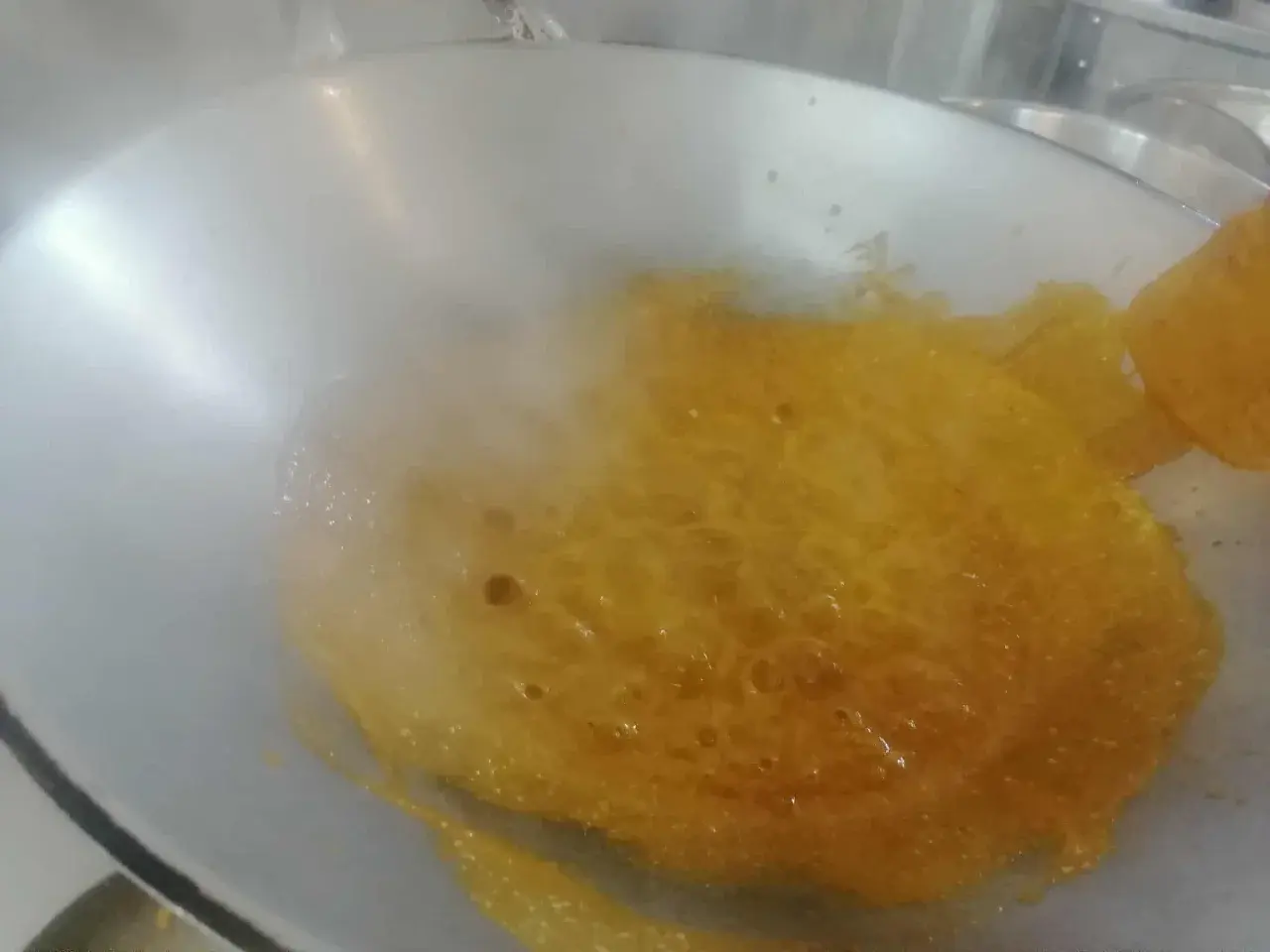- เมื่อน้ำตาลทรายละลายแล้ว ให้ใส่น้ำส้มสายชูลงไป 2 ช้อนโต๊ะ เคี่ยวให้เข้ากัน