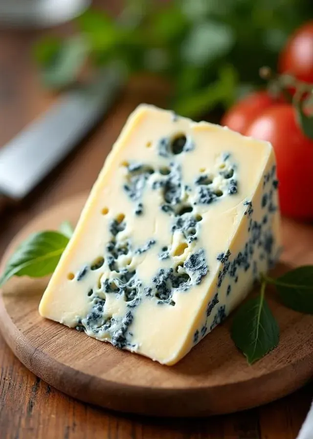 Roquefort (ฝรั่งเศส): ทำจากนมแกะและบ่มในถ้ำ Roquefort-sur-Soulzon มีกลิ่นแรง รสชาติเค็มและเข้มข้น เนื้อค่อนข้างชื้นและร่วน
