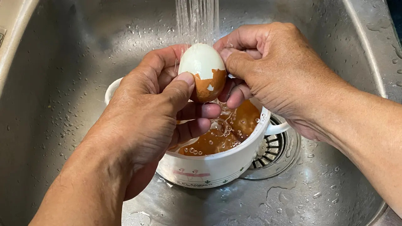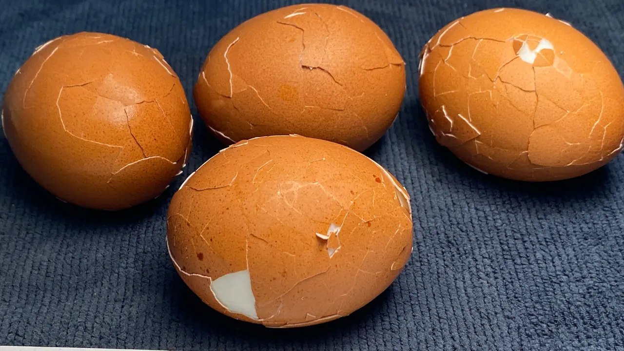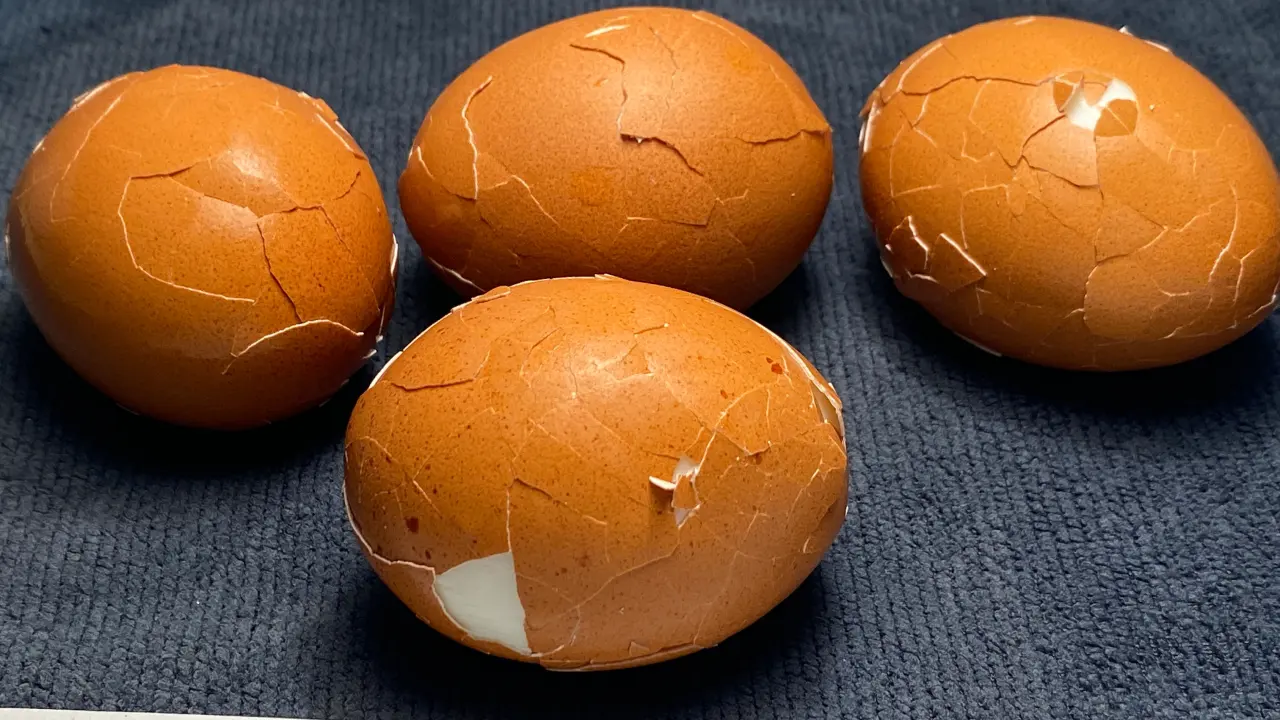 - ทุบเปลือกให้แตกลายทั่วฟอง แล้วกลิ้งบนผ้าขนหนูเปียก 🥊