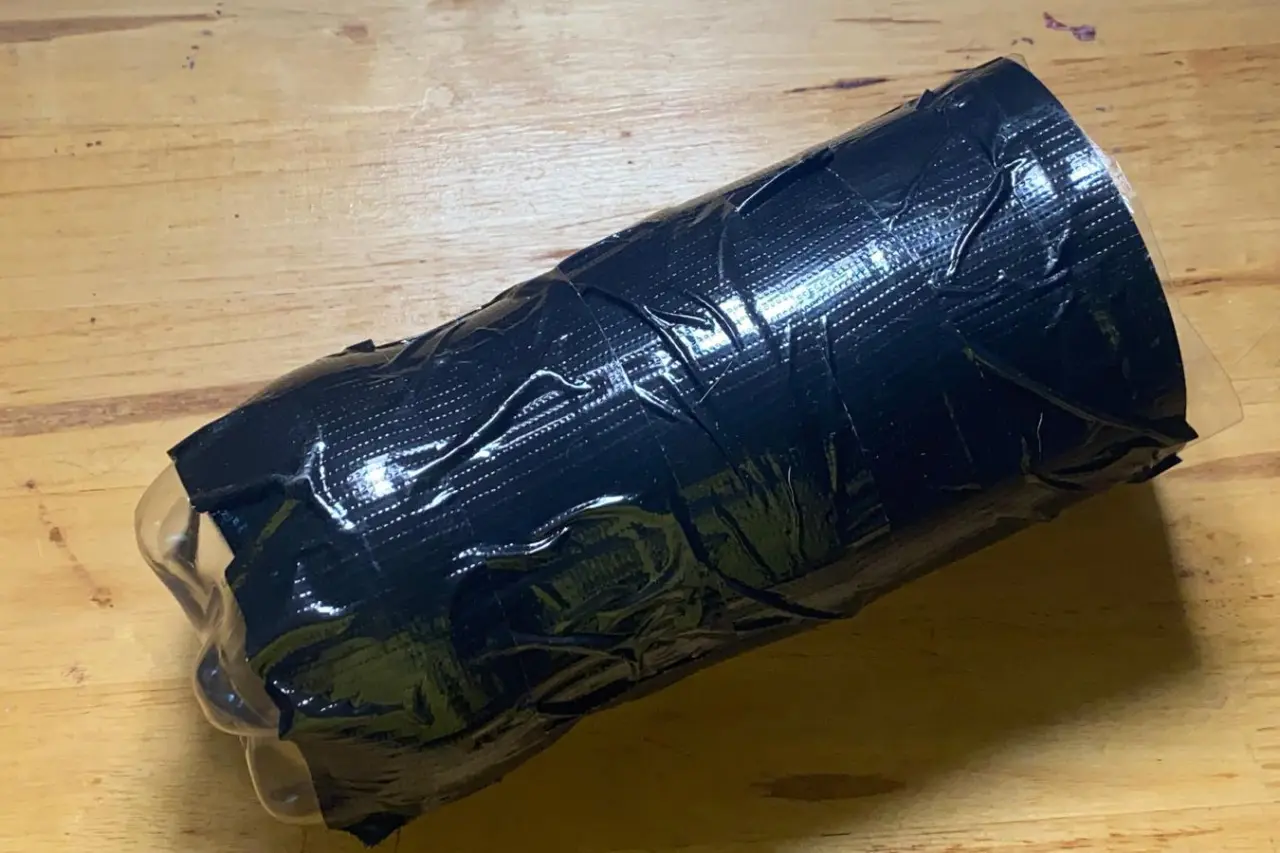 คว่ำปากขวดลง แล้วติดกระดาษสีดำรอบขวด