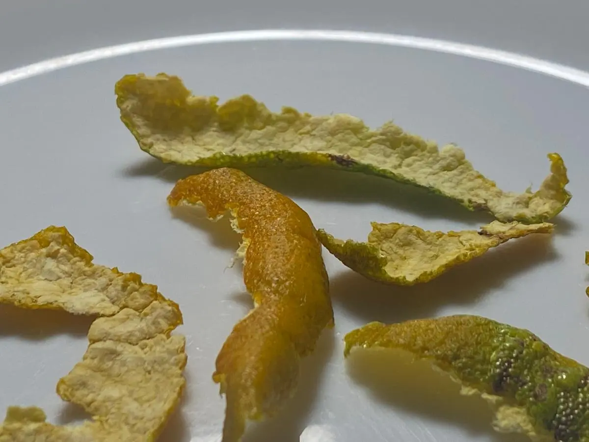- ตากเปลือกส้มให้แห้ง 1 วัน