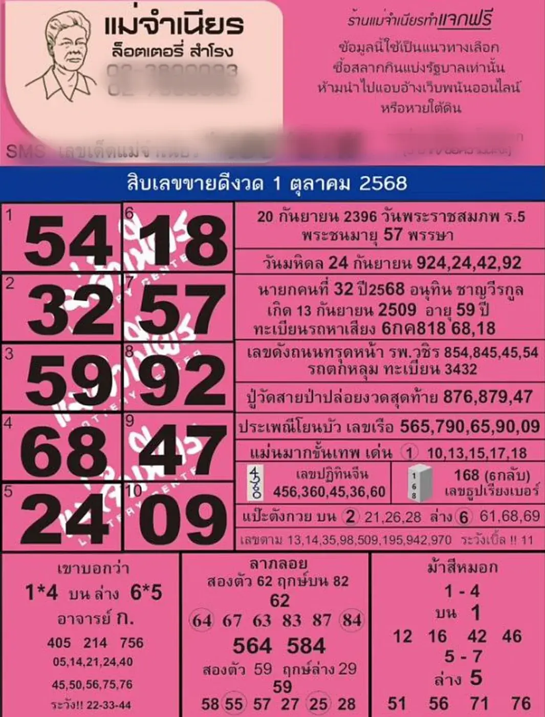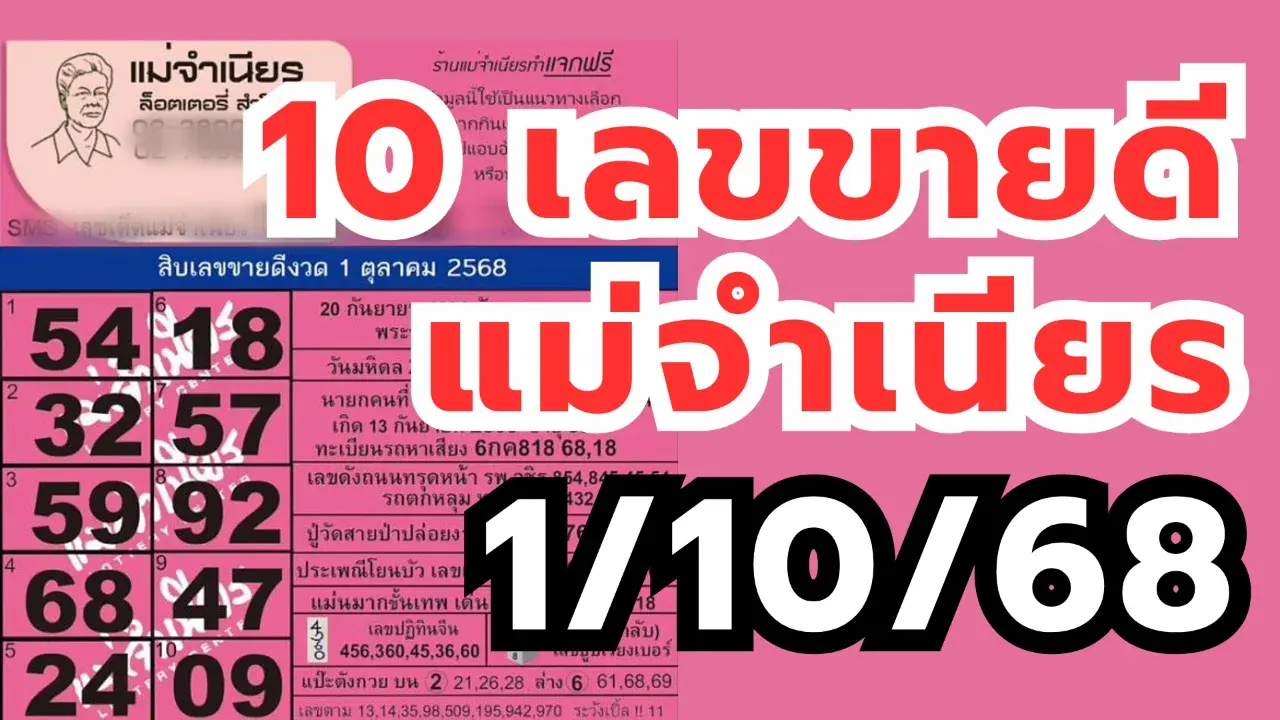 สิบเลขขายดีแม่จำเนียร งวด 1/10/68