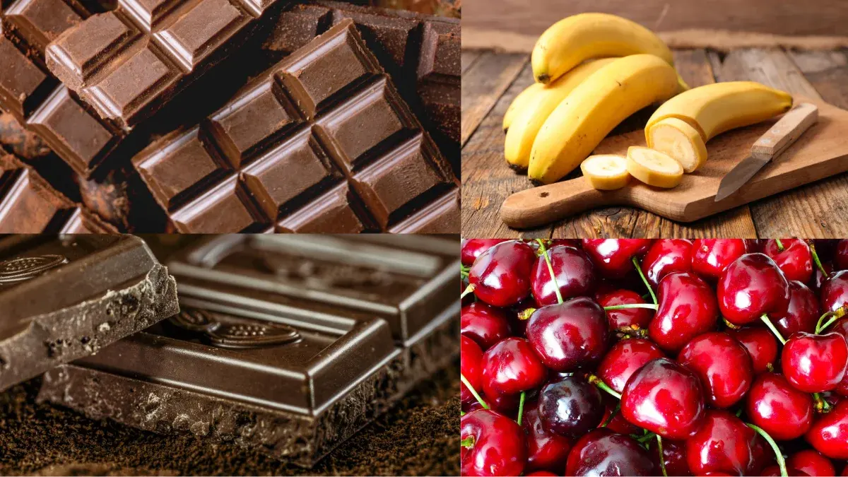 8.กล้วย อุดมไปด้วยสารอาหาร ไฟเบอร์ แร่ธาตุ ที่ช่วยเพิ่มพลังงานให้แก่ร่างกายและมีสารทริปโตเฟน ซึ่งช่วยผลิตฮอร์โมนแห่งความสุข และ สร้างเซโรโทนินให้ร่างกาย ทำให้ระบบประสาทผ่อนคลาย เชอร์รี่ มีคุณสมบัติช่วยกระตุ้นเซราโทนิน และ มีส่วนช่วยในการผลิตเอ็นโดรฟิน โดพามีน นอร์อิพิเนฟรินในร่างกาย ซึ่งเป็นฮอร์โมนที่ช่วยรับมือกับอาการหงุดหงิด