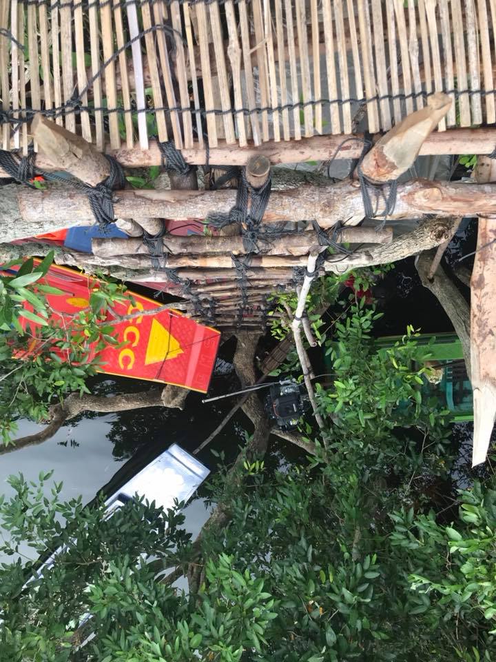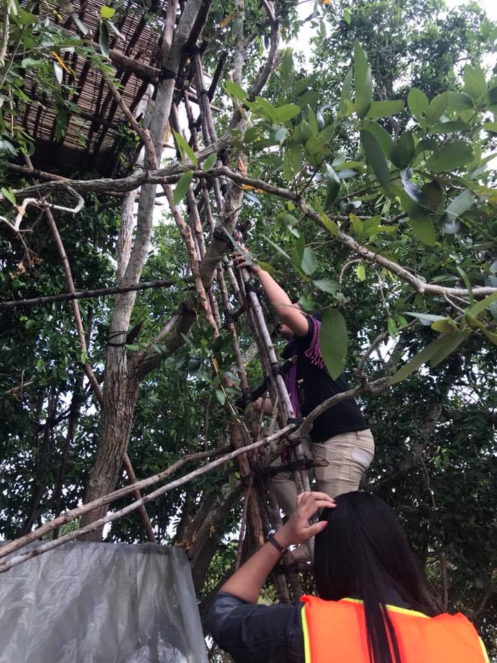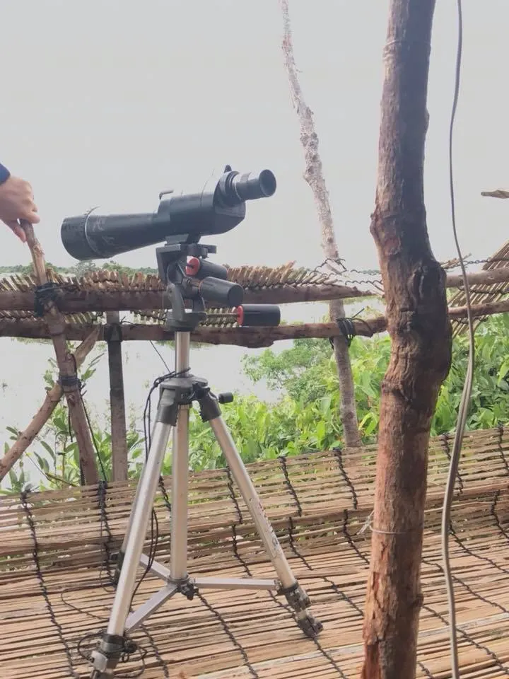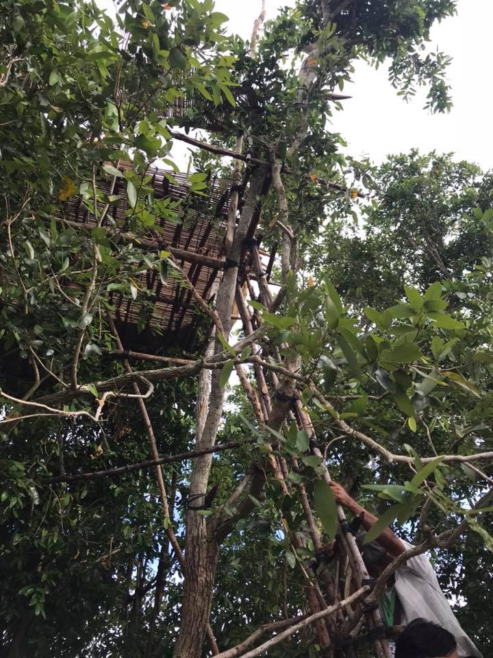 ด้านบนนั้นคือสถานที่ที่เรานั้นจะต้องปีนขึ้นไปเพื่อที่จะส่องนก สูงและน่ากลัวเพราะว่าทำจากไม้ไผ่ เรานั้นมองในส่วนของบันไดนั้นเหมือนบันไดจะบางมาก แต่คนที่ตัวใหญ่มากกว่าเรานั้นเขายังขึ้น ส่วนเรานั้นขึ้นแต่ว่ารอให้เขานั้นลงมาก่อน สั่นมากบันไดในตอนที่เรานั้นปีนขึ้น ต้นไม้ก็โยกหากว่าเรานั้นพลาด ลงสู่น้ำแน่นอนหรือว่าอาจจะตกใส่เรือ แต่ว่าไม่ยอมจับแน่นมาก