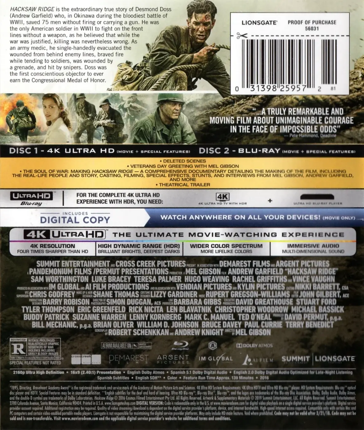 5.รสชาติของภาพยนตร์แนวนี้ต้องอาศัยพลังการแสดงที่เข้าถึงความรู้สึกละเอียดอ่อนอย่างมาก Andrew Garfield รับหน้าที่นี้ไปเต็มๆ นับว่าเป็นชีวิตจริงของ Desmond Doss ที่ทรหดจริงๆ การฝ่าสมรภูมิช่วยชีวิตคนมากขนาดนี้ ไม่มีใครกล้าสบประมาทเขาอีกเลยที่เขาไม่ฆ่าคน
