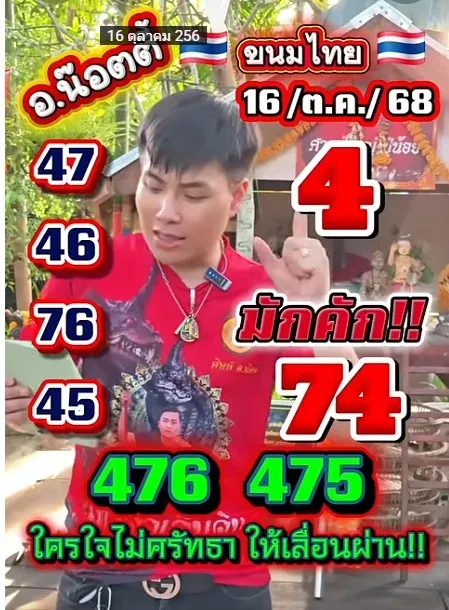 สำหรับแนวทางเลขเด็ด ในงวดวันที่ 16/10/68 โดยสำนักของ อ.น๊อตตี้ ก็ให้เลขเด็ด โดยเน้นที่เลข 4 เป็นหลัก ดังนี้
