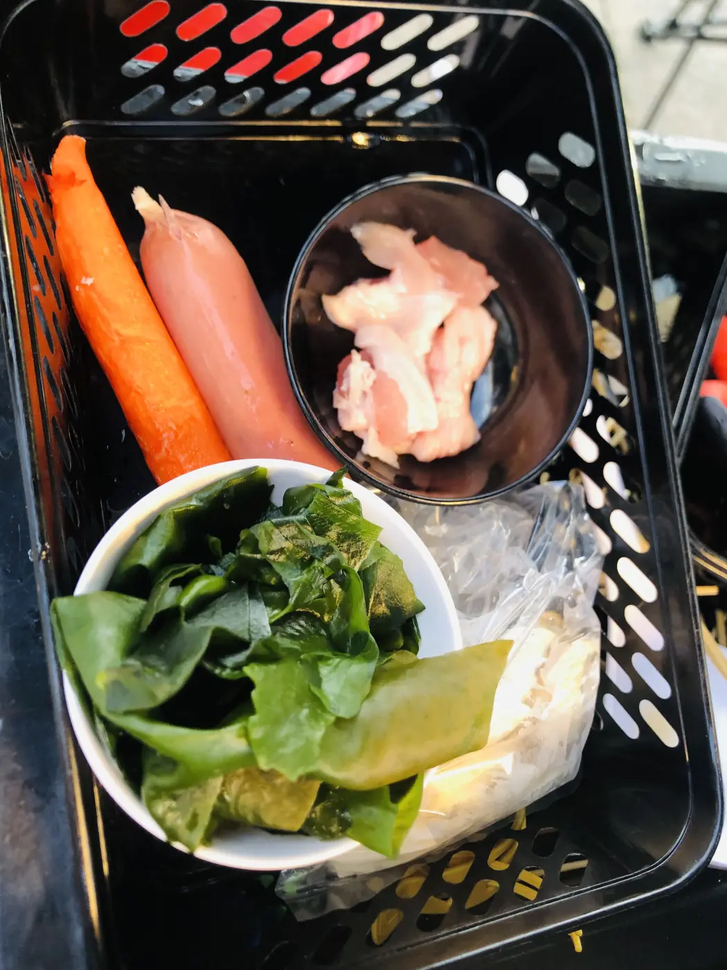 เหมือนการซื้อหม่าล่า หยิบในสิ่งที่เรานั้นต้องการจะกิน ย้ำว่าต้องการจะกิน หากว่าไม่ต้องการผักก็ไม่ต้องใส่ ตอนแรกที่เรานั้นจะกินคือ เน้นในเรื่องของความสวยงามไม่ต้องสน เอาที่ชอบ ปูอัด ฮอทดอก หรือลูกชิ้นลาวานั้นได้ทั้งหมด จากนั้นก็จะอร่อยด้วย สิ่งหนึ่งคือสาหร่าย แทนการทานผัก