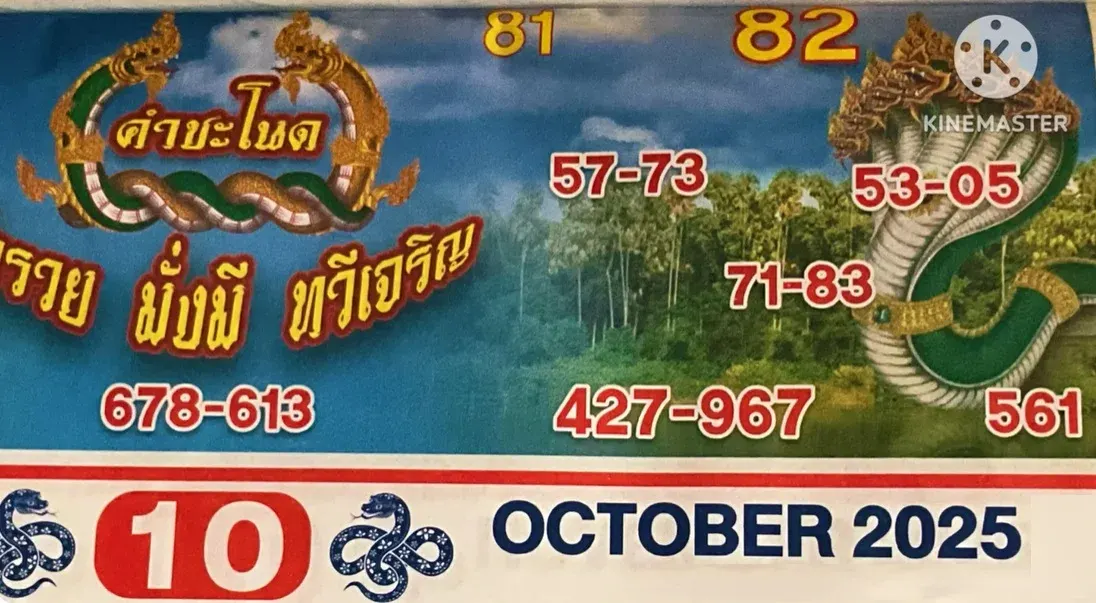 - เลขท้าย 2 ตัว : 57 - 73 - 53 - 05 - 71 - 83