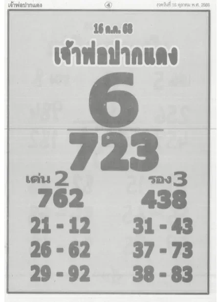 เลขเด็ด "เจ้าพ่อปากแดง" งวดวันที่ 16 ตุลาคม 68 มาแล้ว!..อยากถูกหวย ส่องด่วน! วันนี้เรามีแนวทางเลขเด็ด เลขดังดีๆ จาก "เจ้าพ่อปากแดง" มาฝากกันอีกแล้ว เพราะฉะนั้นรีบเข้ามาลุ้นรวยและเลือกซื้อหวยก่อนใคร มีทั้งเลขท้าย 2 ตัวและ 3 ตัวเอาไว้ใช้ในการเสี่ยงโชคในงวดนี้