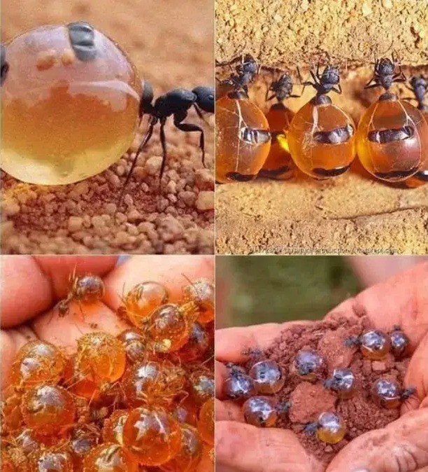 คุณเคยเห็นมดก้นป่อง เหมือนลูกองุ่นติดก้นบ้างไหม และก้นนี้ใส่ที่เหมือนแบกน้ำหวานอยู่ตลอดเวลาคือ มดโถน้ำผึ้ง มดงานที่มีลักษณะพิเศษมีอยู่ในมดหลายสายพันธุ์ทั่วโลก มดโถน้ำผึ้ง เช่น มดเรพลีต มดเพลเรอร์เกต หรือมดโรตุนด์ ซึ่งกินอาหารปริมาณมากจนท้องบวมอย่างมหาศาล ปรากฏการณ์การพองตัวของลำตัวอย่างรุนแรงนี้เรียกว่าฟิโซแกสทรี มดชนิดอื่นจะดึงอาหารจากพวกมันผ่านกระบวนการโทรฟัลแล็กซิสพวกมันทำหน้าที่เป็นตู้กับข้าวที่ มีชีวิต มดฮันนี่พ็อตจัดอยู่ในสกุลใดสกุลหนึ่งจากหลายสกุล รวมถึงMyrmecocystusและCamponotusพวกมันได้รับการบันทึกครั้งแรกในปี พ.ศ. 2424 โดยHenry C. McCookและอธิบายเพิ่มเติมในปี พ.ศ. 2451 โดยWilliam Morton Wheeler