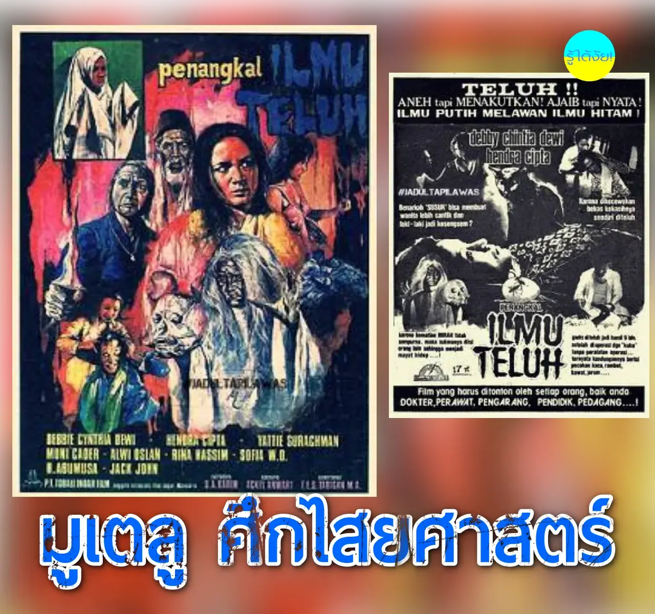 ภาพยนตร์อินโดนีเซีย: คำว่า "มูเตลู" มีที่มาจากภาพยนตร์เรื่อง Penangkal Ilmu Teluh ซึ่งเป็นเรื่องเกี่ยวกับหญิงสาวสองคนที่ใช้มนต์ดำต่อสู้แย่งชิงชายหนุ่มคนรัก โดยมีการร่ายคาถาที่ขึ้นต้นด้วยคำว่า "มูเตลู"