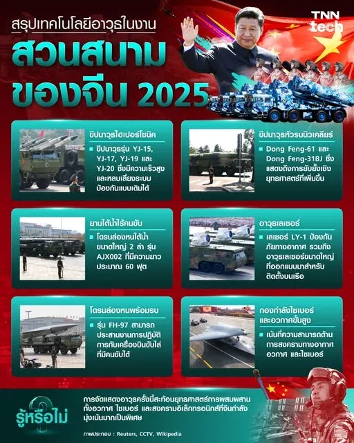 ซึ่งขณะนี้ จีนกำลังพัฒนาอาวุธและระบบทางทหารขั้นสูงในปริมาณและคุณภาพสูง เพื่อท้าทายอิทธิพลทางทหารและเทคโนโลยีของสหรัฐฯ ไม่ได้หมายความว่ามีแผนโจมตีจริงทันที แต่ชี้ถึงการแข่งขันทางยุทธศาสตร์ที่เข้มข้นขึ้นระหว่างสองมหาอำนาจ