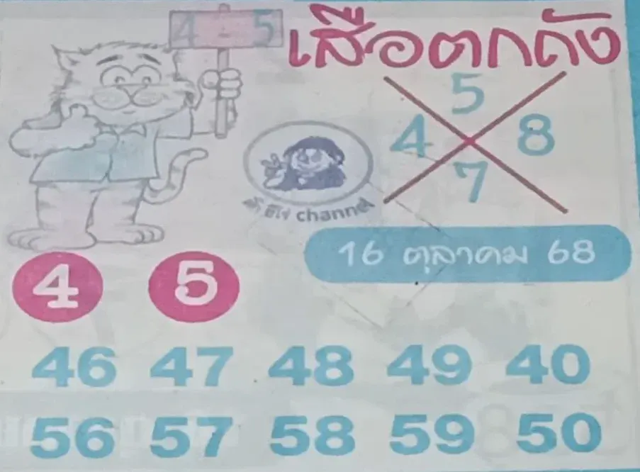 เลขเด็ด "เสือตกถัง (ปกฟ้า)" มาแล้ว! งวดวันที่ 16 ตุลาคม 68..รีบเลยก่อนหวยหมด!!