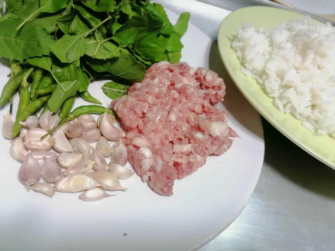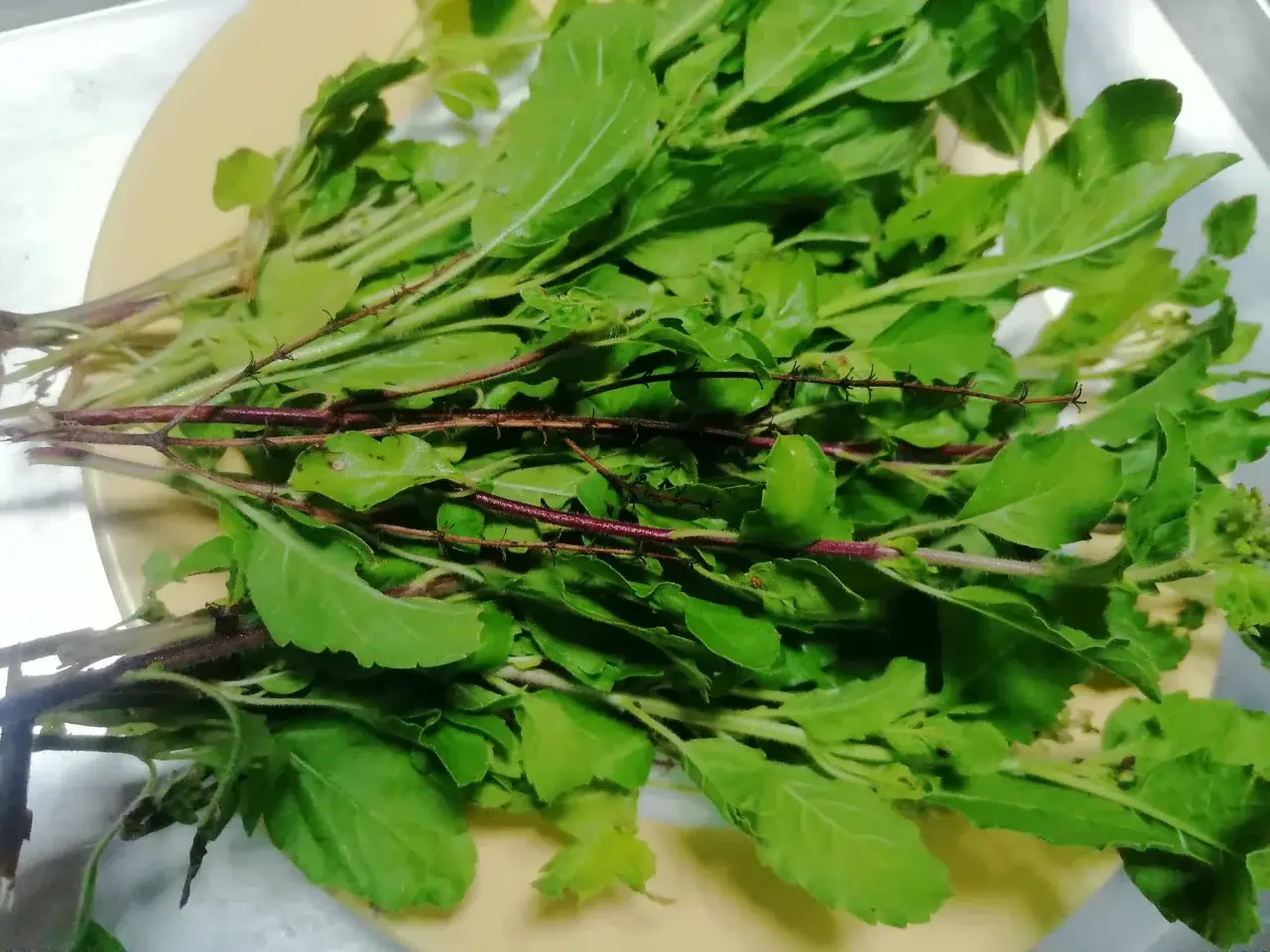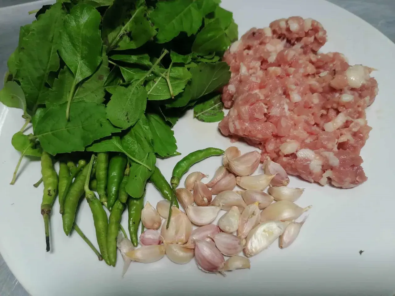 - เด็ดใบกะเพรา 1 กำมือ