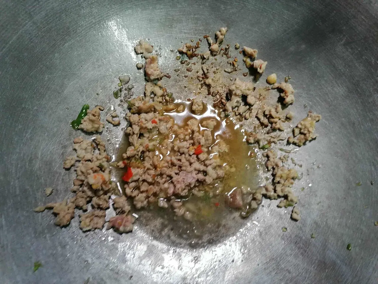 - ใส่เนื้อหมูผัดยีให้สุก