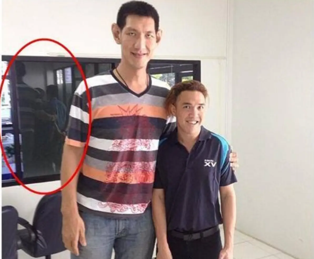 นี่เป็นอีกรูปที่เอาลงโซเชียลแล้วเป็นเรื่องเป็นราวใหญ่โต ก็ลองสังเกตในวงกลมสีแดงดีๆสิคะ ดูยังไงๆก็เหมือนคน 3 คนถ่ายรูปด้วยกัน แต่ทำไมในรูปถึงมีแค่ 2 แล้วทั้ง 2 คนยังบอกอีกด้วยว่าในห้องนั้นไม่มีใครแต่งตัวเหมือนชายในรูปเลย แล้วคำถามคือ เค้าคือใครหว่า?