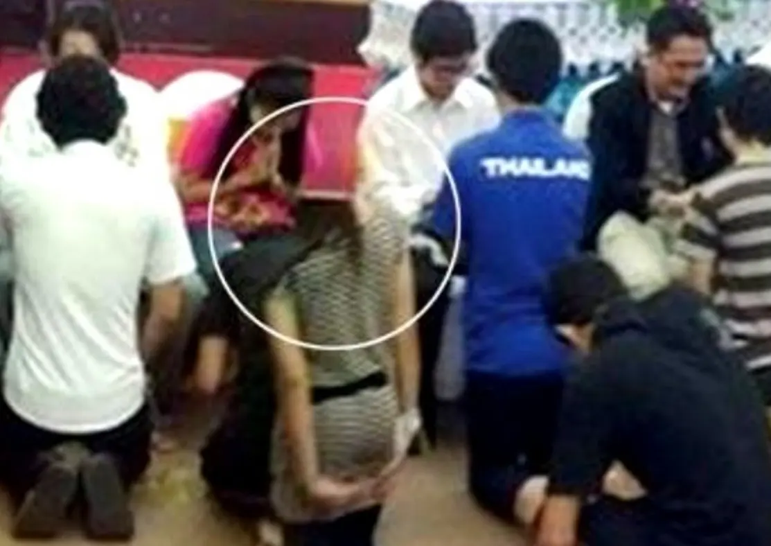 ภาพนี้ไม่ได้มีการถ่ายติดวิญญาณ หรือติดอะไรมาแต่อย่างใด แต่กลับเป็นรูปที่หัวหาย!! ใช่แล้วค่ะหัวของคุณผู้หญิงท่านนั้นหายไป ทั้งๆที่ตอนถ่ายก็ไม่ได้ก้มหัวลง หรือต่อให้ก้มยังไงก็ไม่มีทางที่หัวจะหายไปแบบนั้นได้ พอรูปออกมาทั้งเจ้าตัว และช่างภาพเลยต้องรีบไปทำบุญกันใหญ่