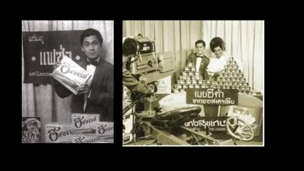 โฆษณารถยนต์ก็ต้องขับรถเข้ามาจอดในห้องส่งเลย พร้อมทั้งมีผู้โฆษณา บรรยายสรรพคุณออกอากาศกันสดๆ เหมือนพริตตี้ในงานมอเตอร์โชว์สมัยนี้ แต่แต่งตัวสุภาพเรียบร้อย ฝ่ายชายที่ดังด้านนี้คือ “เทิ่ง สติเฟื่อง” ฝ่ายหญิงคือนางเอกละครชื่อดัง “อารีย์ นักดนตรี” ที่เทิ่งดังก็เนื่องจากความแคล่วคล่องในงาน ตลอดจนความกล้าแสดงออกอย่างที่คนอื่นไม่กล้า เช่นลงไปนั่งยองๆในกาละมังซักผ้าเพื่อโฆษณาผงซักฟอก จนบริษัทห้างร้านหลายแห่งต่างระบุว่าต้อง เทิ่ง สติเฟื่องเท่านั้นที่จะเป็นผู้โฆษณาสินค้าของตน