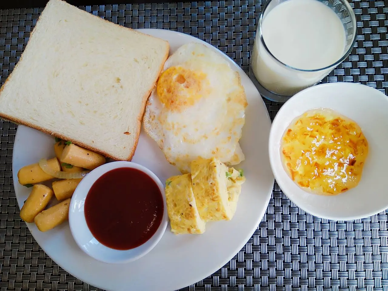 ถือว่าในส่วนของอาหารเช้าที่นี่นั้นจัดเต็มมาก มีทุกอย่างหากว่าเรานั้นชอบในส่วนของข้าวต้มสามารถที่จะทานได้ ส่วนของอาหารจานเดียวอาหารตักทานได้หมด แต่เช้าแบบนี้เรานั้นเลือกในสิ่งที่เรานั้นชอบคือขนมปัง และไข่ดาว รวมถึงฮอทด๊อกที่หนังกรอบ ตักมาเพียงแต่พออิ่มไม่พอค่อยเดินไปใหม่