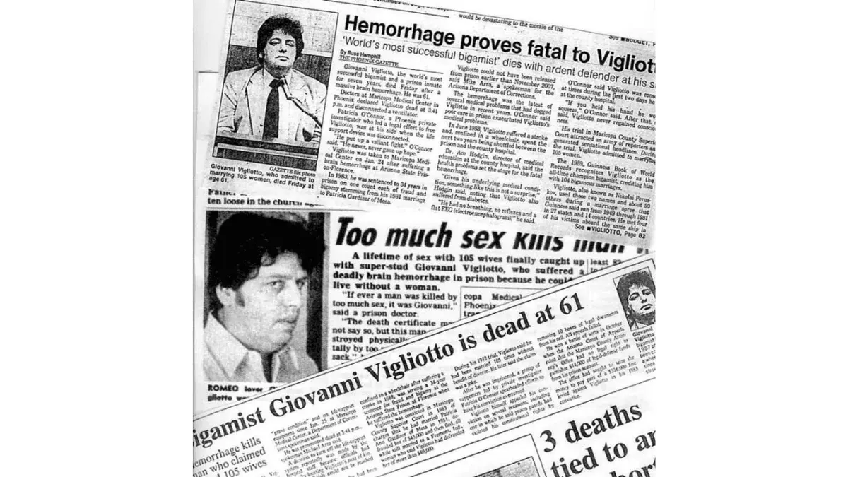 โจวานนี วิกลิออตโตแต่งงานกับผู้หญิงมากถึง 104 หรือ 105 คน ระหว่างปี 1949 ถึง 1981 โดยไม่เคยหย่ากับใครเลย ทำให้เขาถูกจารึกไว้ในประวัติศาสตร์ในฐานะชายที่ “แต่งงานซ้อนมากที่สุดในโลก” โดยภรรยาทุกคนของเขาไม่เคยรู้ว่ามีผู้หญิงคนอื่นอยู่ในชีวิตเขาเลย แถมแทบไม่รู้จักตัวจริงของเขาด้วยซ้ำ
