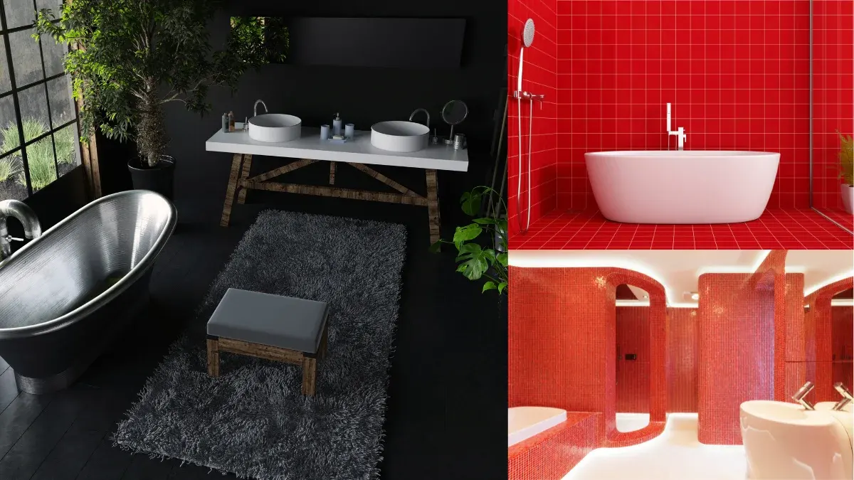 สีแดงสด เป็นสีที่มีพลังงานแรงเกินไป อาจทำให้เกิดความร้อนและความไม่สมดุลในห้องน้ำ