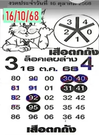 เลขเด็ด "เสือตกถัง" สูตรล็อคเลขล่าง งวดวันที่ 16 ตุลาคม 68..คอหวยห้ามพลาด!