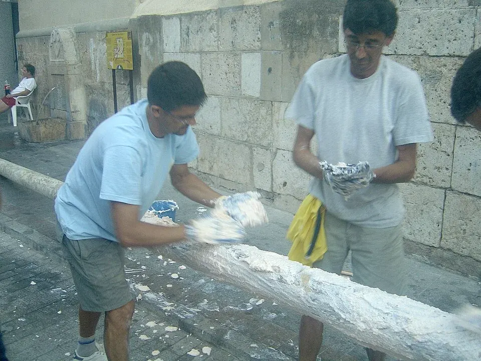ก่อนที่มะเขือเทศหลายตันจะถูกสาดใส่กันอย่างดุเดือด งานจะเริ่มต้นขึ้นด้วยพิธีที่ตื่นเต้นไม่แพ้กันในเวลา 10:00 น. นั่นคือการแข่งขัน "ปีนเสาแฮม" ผู้กล้าจะต้องปีนป่ายเสาที่ถูก ทาน้ำมัน ลื่น ๆ เพื่อขึ้นไปคว้า ก้อนแฮม ที่ตั้งอยู่บนยอดเสา ผู้ชมด้านล่างจะส่งเสียงเชียร์อย่างกึกก้องจนกระทั่งมีผู้พิชิตเสาได้สำเร็จ