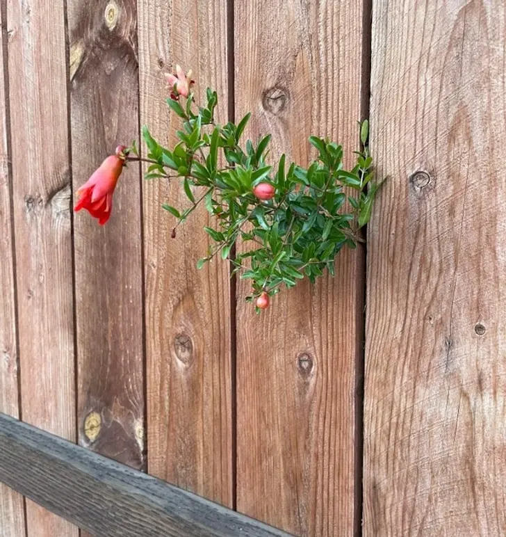 9. ต้นไม้นี้เติบโตผ่านทะลุรั้วออกมา
