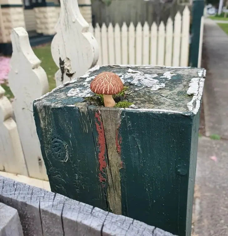 12. ฉันเพิ่งได้เจอเห็ดน้อย ๆ เจ๋ง ๆ ดอกนี้บนเสารั้วไม้แถวบ้านของฉัน