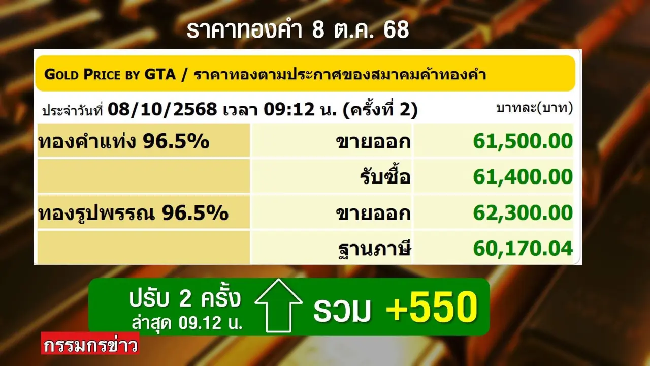 ทองคำ! ทองคำไทย 8 ต.ค. 68