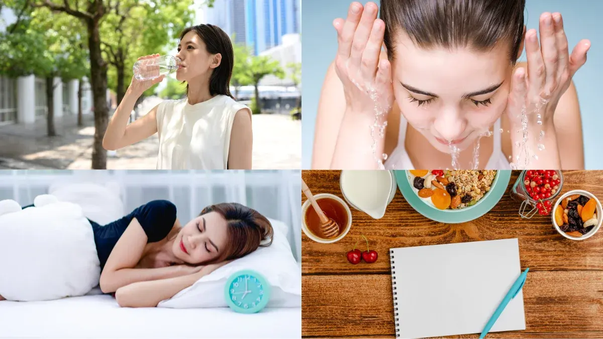 - ดื่มน้ำเปล่าให้เพียงพอ อย่างน้อยวันละ 8-10 แก้ว ช่วยให้ผิวชุ่มชื้นและขับของเสีย