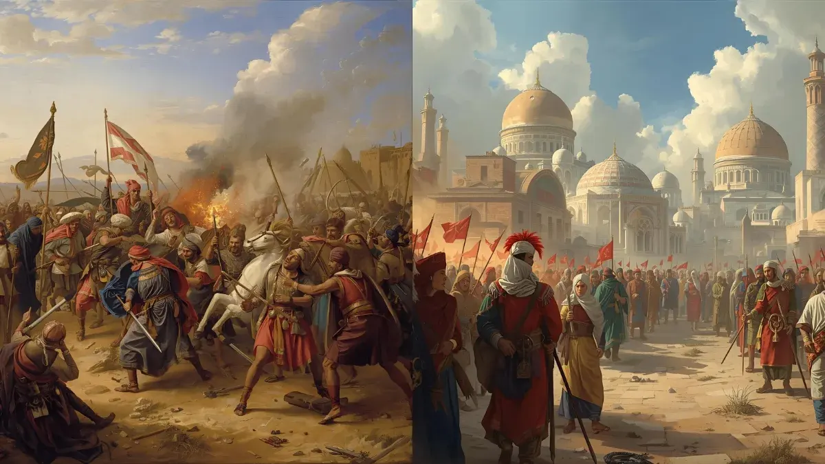 สงครามเริ่มขึ้นราว ค.ศ. 629 และดำเนินต่อไปจนถึงประมาณปี ค.ศ. 1050 ความขัดแย้งนี้มีลักษณะเป็นระลอก มีทั้งช่วงเวลาสงบและการรบพุ่ง จุดมุ่งหมายสำคัญของสงครามรวมถึงการแย่งชิงพื้นที่ยุทธศาสตร์และศูนย์กลางทางศาสนา เช่น กรุงเยรูซาเล็ม